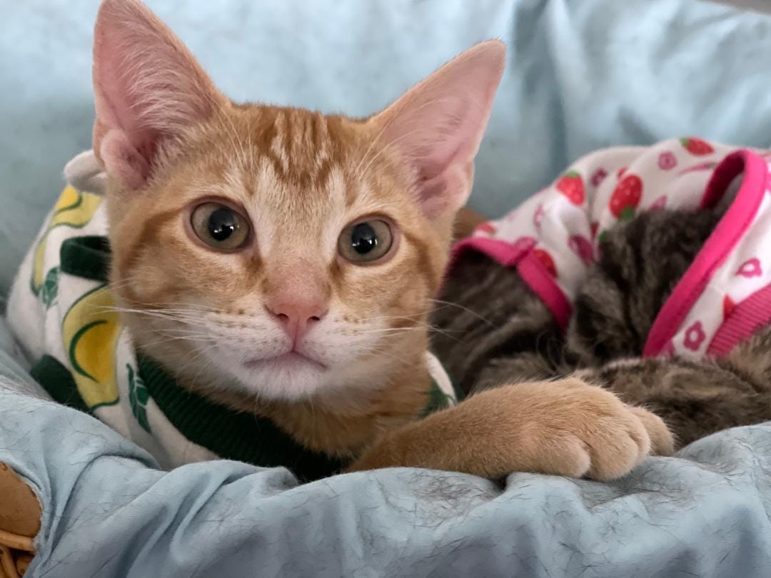 Fondue is a sweet and mild-mannered orange tabby boy, born on 3/21/25. His warm coloring matches his affectionate natureโheโs a cuddly kitten who enjoys soaking up attention and being close to his people. Fondue gets along beautifully with cats, dogs, and kids, making him a versatile addition to almost any family. His playful yet calm demeanor makes him a wonderful companion who blends seamlessly into a busy household.