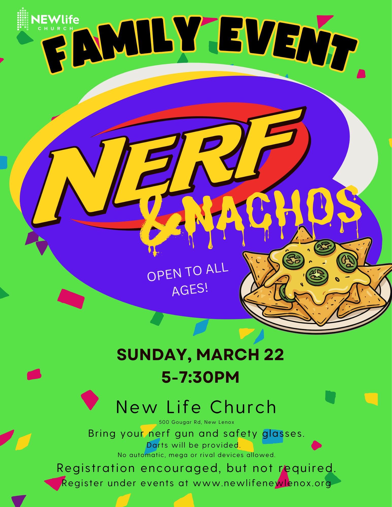 📍 Mar 22 - Nerf & Nachos at New Life Church (New Lenox) - Details