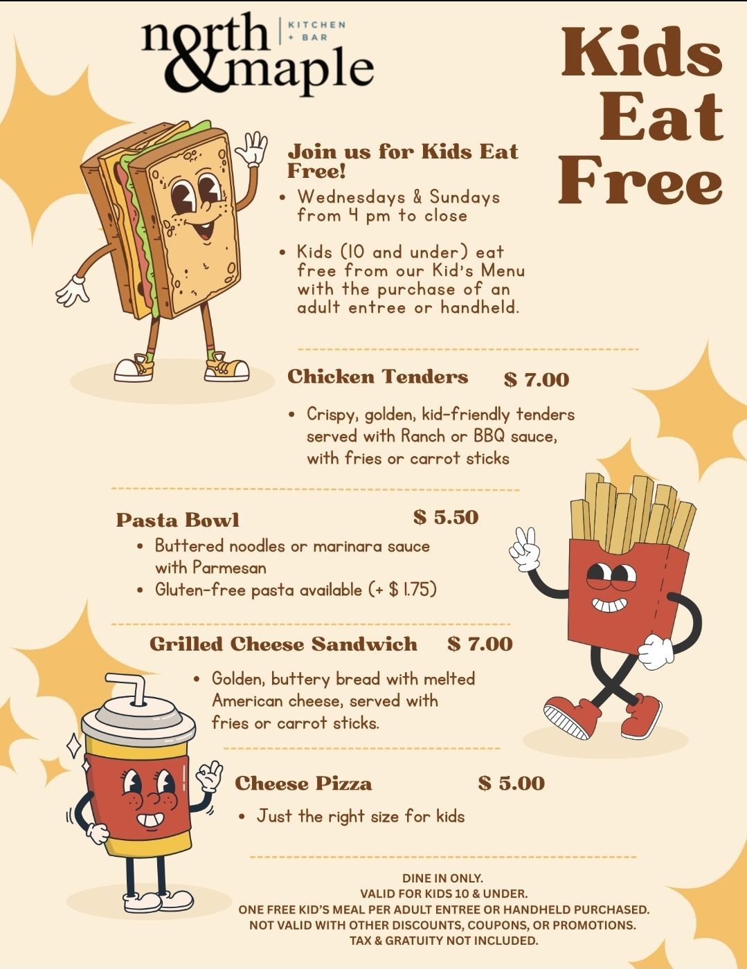 ๐ Kids Eat Free Wednesdays & Sundays at North + Maple (New Lenox) - Details